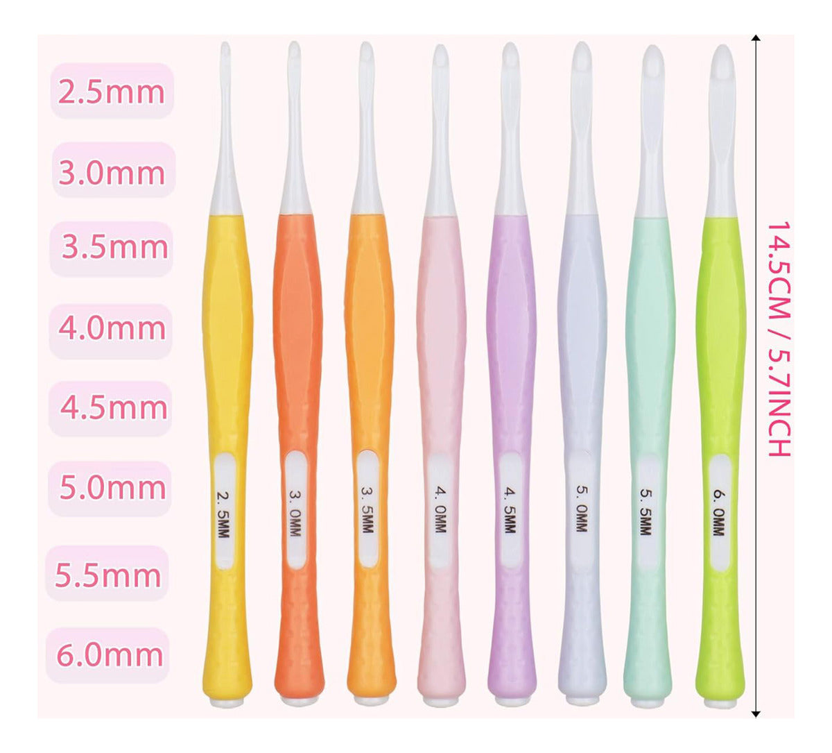 8 Crochet Con Mango De Silicona Ergonomico 2.5 A 6mm