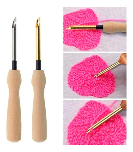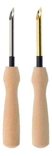 Pack 2 Agujas Mágicas Mango Madera 5mm + Enhebrador