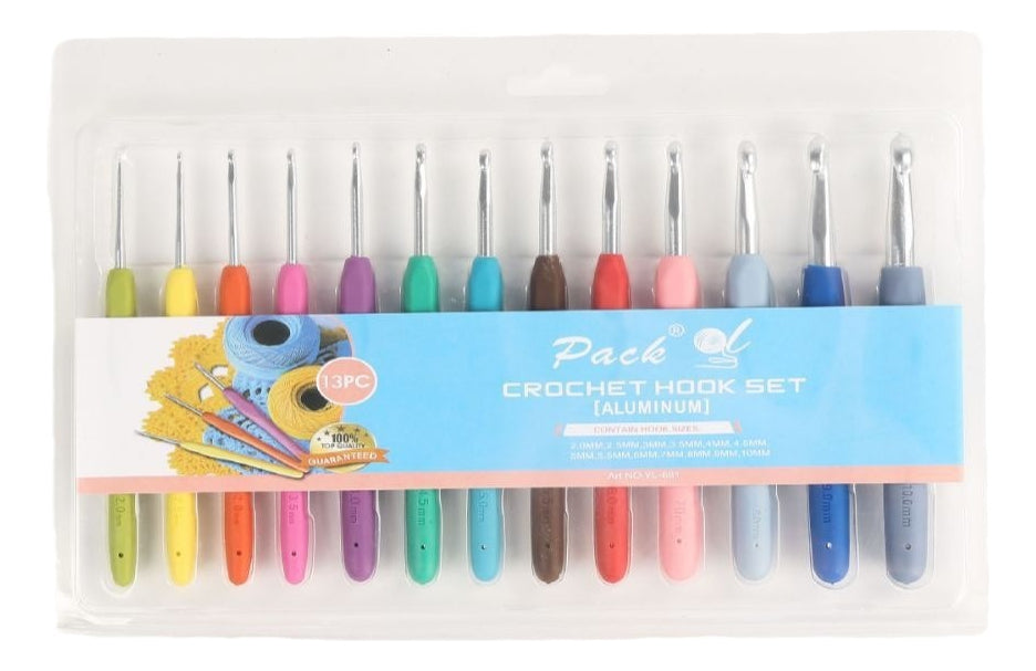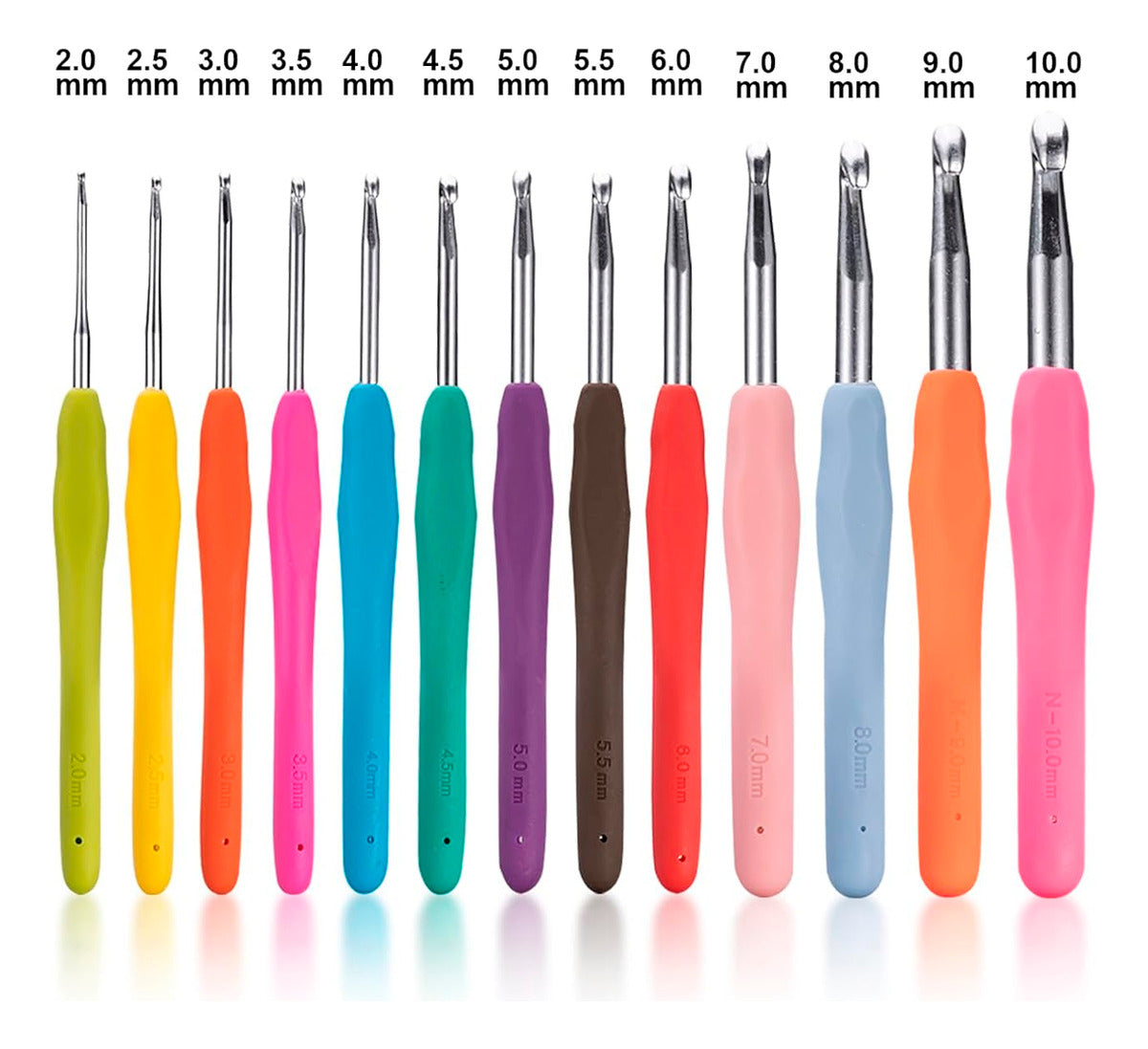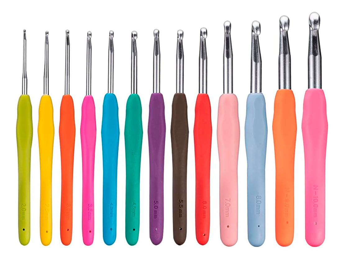 Set de 13 crochet con mango ergonómico de silicona. El set incluye las siguientes medidas: