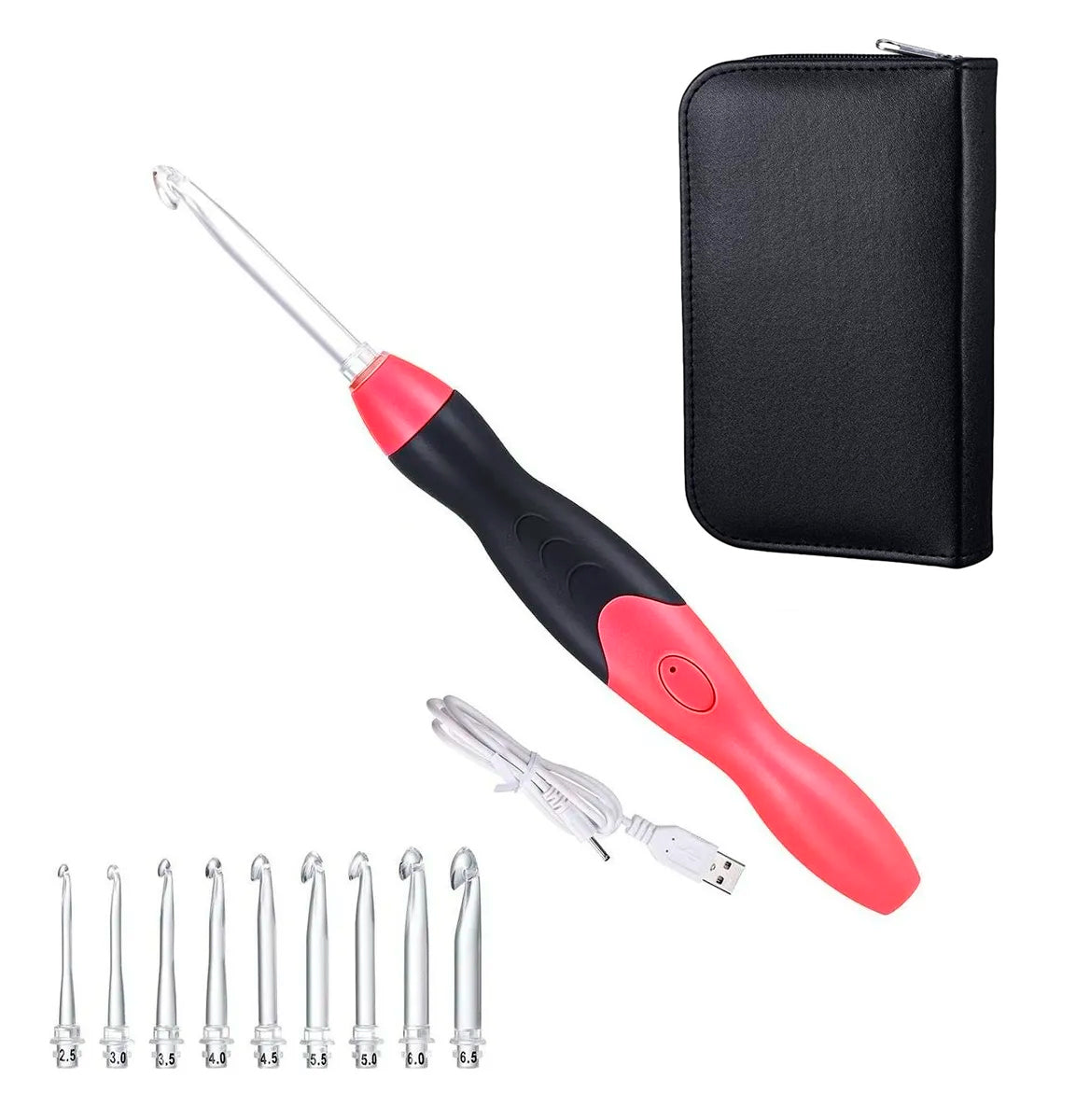 Set De Crochet Con Luz Led 9 Cabezales Recargable Por Usb