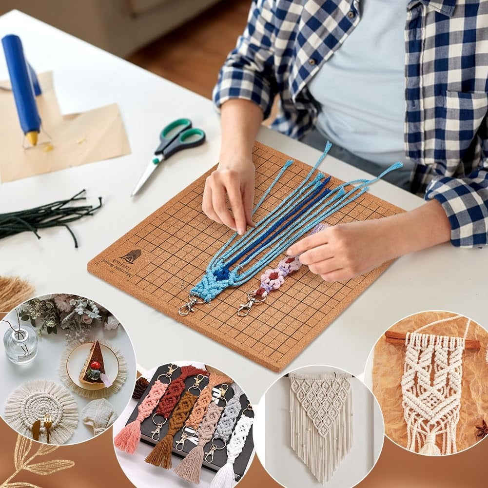 Este tablero de macramé de corcho 18x18cm es una herramienta esencial para quienes trabajan con nudos, tejidos decorativos y proyectos de bisutería. Su superficie firme y liviana permite fijar hilos, cordones y patrones con precisión, manteniendo el diseño estable durante todo el proceso.
